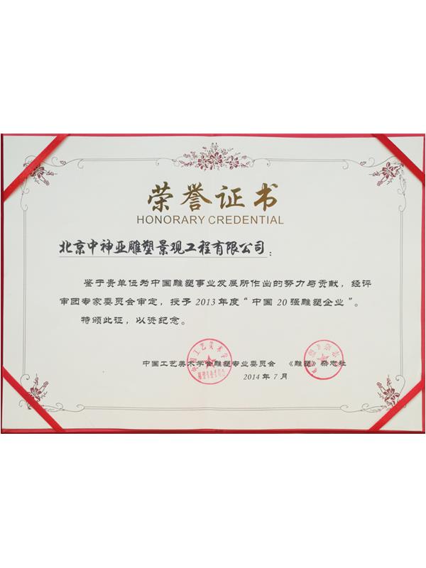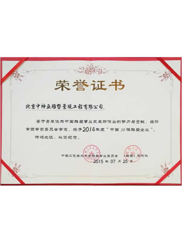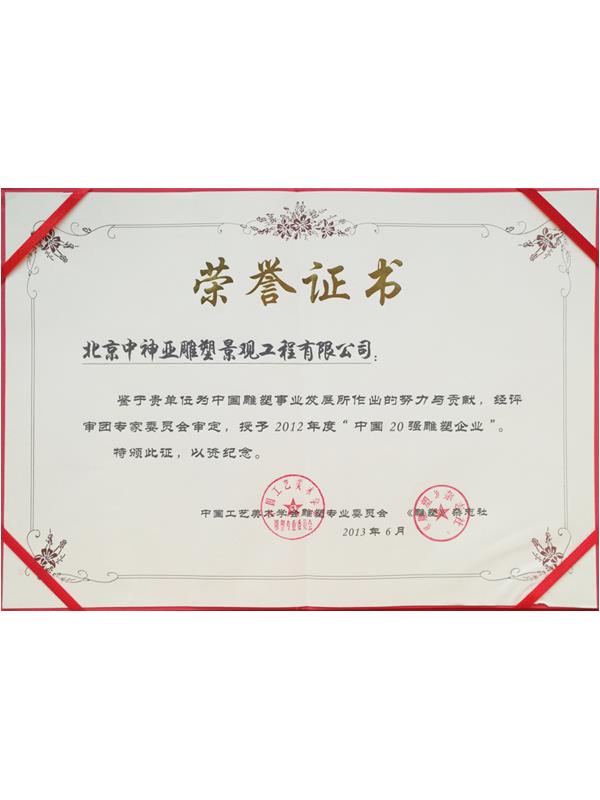 中神亞雕塑企業始建于1986年,(期前身為溫嶺藝術雕刻廠北京分廠)是設計和制作不銹鋼,鈦金屬,鍛銅,鑄銅,石刻等室內外雕塑的專業企業。是中央美術學院雕塑系和清華大學美術學院雕塑系實習創(chuàng)作基地,亦是中國美術家協會雕塑藝術委員會和中國工藝美術學會雕塑專業委員會特別推薦企業;是全國雕塑企業委員會副主任委員單位;是中國雕塑學會理事會員單位;2010年增選為中國建設文化藝術協會環(huán)境藝術專業委員會常務理事單位;2011年批準加入為中國建筑金屬結構協會會員,2012年增選為中國建筑金屬結構協會第十屆理事會理事單位;中國鋼結構協會團體會員;是具備住建部核準可承擔各種類型藝術鋼結構、藝術網架結構工程三級資質企業...